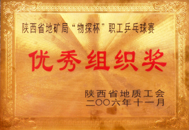 省地礦局物探杯職工乒乓球賽優(yōu)秀組織獎