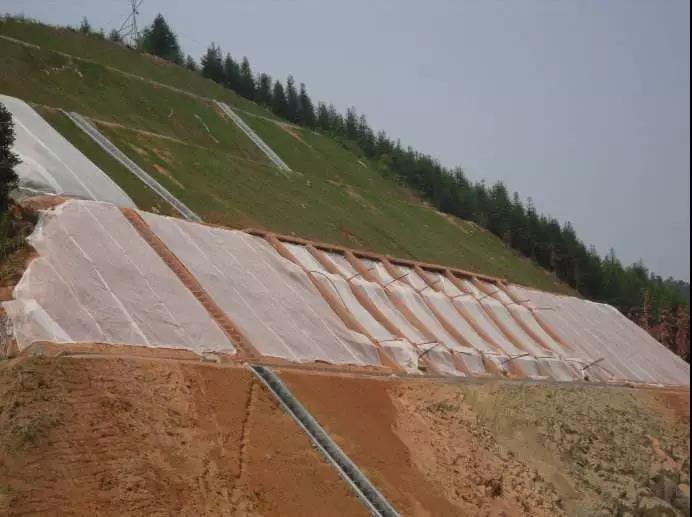 以往的邊坡防護(hù)綠化方法是:在挖好的邊坡上先掛網(wǎng),再通過(guò)壓力噴射將草種和泥漿組成的混合液噴到邊坡上,將邊坡覆蓋,等草長(zhǎng)出后達(dá)到植物防護(hù)的目的。但是這種方法有很大的局限性,它只能用于坡度小于45°的邊坡防護(hù)。雖然這種防護(hù)方式采取掛網(wǎng)錨固等措施,試圖使土壤能很好地附著于坡面,但是因?yàn)檫吰赂叨负屯寥赖淖灾兀箛娭矊訜o(wú)法抵抗暴雨沖刷和烈日暴曬,最終引起溝蝕、片蝕,甚至坡面整體垮塌,不能解決固土這一根本問題。