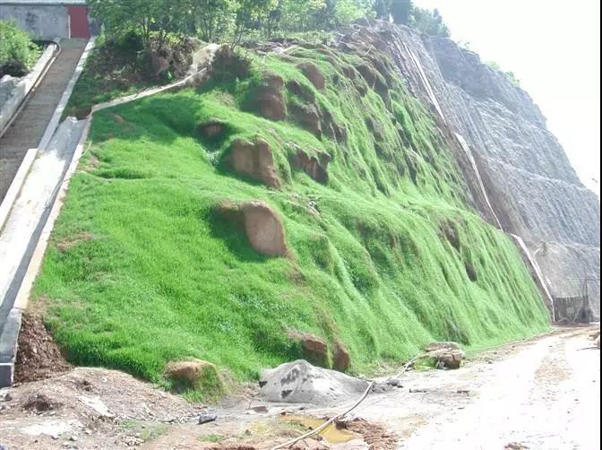 所謂植被混凝土護(hù)坡綠化技術(shù)也就是俗稱的在石頭上種草。它是采用特定混凝土配方和混合植綠種子配方,對(duì)巖石邊坡進(jìn)行防護(hù)和綠化的一種新技術(shù)。由于這種混合料既有草種,又以水泥作為黏結(jié)劑,因此被形象地稱為植被混凝土。