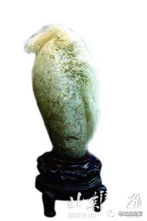 這塊“生發(fā)石”就是連續(xù)幾年在“全國(guó)文化奇石展”中蟬聯(lián)金獎(jiǎng)的大名鼎鼎的“白發(fā)魔女”。它的主人、遼寧本溪的收藏家田恩宏(閻娜的父親)還記得,自己是1987年在青島出差時(shí)從民間購(gòu)買并收藏的,對(duì)“生發(fā)石”一見鐘情也是緣于這塊橢圓形的鵝卵石上長(zhǎng)著和人的頭發(fā)一樣的白發(fā)。
