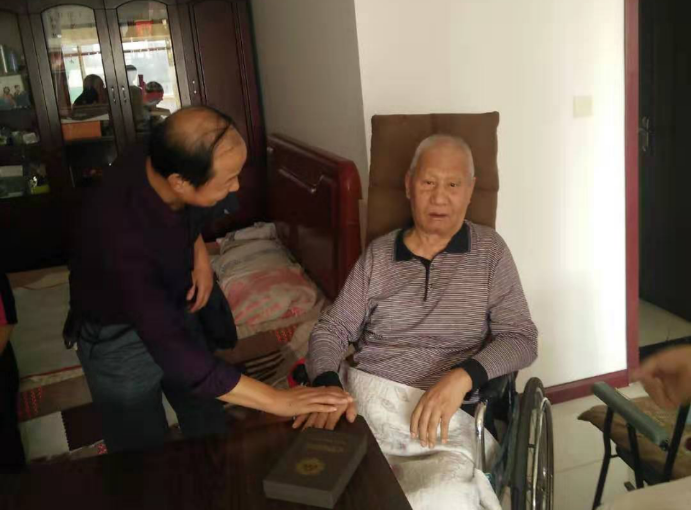 9月22日上午,公司咨詢員李萬生、張巍和黨群工作部工作人員的陪同下,前往山西省臨汾市看望建國前老黨員老干部邰懷民、羅嘉祥兩位老同志,將紀(jì)念章送達(dá)到兩位老同志的手中。老同志堅持坐起來,并穿戴整齊,在接過紀(jì)念章那一刻,兩位老同志心情激動都流下了熱淚,并表示感謝黨和國家還記著他們想著他們。