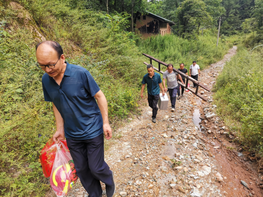 7月24日生態(tài)環(huán)境與地質(zhì)災(zāi)害處聯(lián)合商州區(qū)自然資源局?jǐn)y帶救援物資、徒步5公里前往受災(zāi)嚴(yán)重的腰市鎮(zhèn)江山村小溝組排查救助受災(zāi)群眾,沿途道路沖毀,排查組涉水或借用村民梯子架路前行,排查出的地災(zāi)點(diǎn)設(shè)置警戒線,轉(zhuǎn)移安置群眾及家電物資,并捐贈(zèng)方便面、面包、餅干等生活物資,宣傳培訓(xùn)識(shí)災(zāi)避險(xiǎn)應(yīng)急知識(shí),嚴(yán)防死守地質(zhì)災(zāi)害。7月26日,省應(yīng)急廳總工程師董啟元聯(lián)同省水利廳、省自然資源廳專家深入商州區(qū)檢查指導(dǎo)地質(zhì)災(zāi)害防范工作,我公司現(xiàn)場(chǎng)匯報(bào)各隱患點(diǎn)風(fēng)險(xiǎn)排查情況。