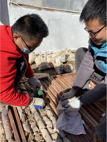 受到洪災(zāi)影響,導(dǎo)致項(xiàng)目原計(jì)劃9月底需結(jié)束的探礦工程(鉆探、硐探)至現(xiàn)今(12月初)仍未完成,對項(xiàng)目組在野外的實(shí)施也造成了極大的困難?辈閰^(qū)地處秦嶺山脈小秦嶺西段、分水嶺南側(cè),地形屬中低起伏的山區(qū)及河谷地貌類型,大部分區(qū)域海拔超過1500米,11月以后該區(qū)域?qū)儆谒⒈鶅銎,最低溫度達(dá)-10℃以下。為了保質(zhì)保量地按時(shí)完成項(xiàng)目野外勘查工作,擴(kuò)大找礦成果,項(xiàng)目組人員不畏嚴(yán)寒,克服重重困難,大家在寒風(fēng)呼嘯、極寒天氣的環(huán)境下堅(jiān)守在野外一線,對鉆探、硐探工程的施工及時(shí)進(jìn)行指導(dǎo),按時(shí)完成工程編錄、采集樣品等地質(zhì)工作。