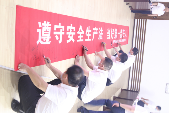 活動啟動儀式由公司紀(jì)委書記趙永江主持。首先全體人員觀看了2022年“安全生產(chǎn)月”主題宣教片《奮進(jìn)》、《遵守安全生產(chǎn)法,當(dāng)好第一責(zé)任人》、《生命至上》;公司黨委書記、執(zhí)行董事安林帶領(lǐng)大家再次重溫學(xué)習(xí)習(xí)近平總書記關(guān)于安全生產(chǎn)重要論述和有關(guān)指示批示精神;公司黨委副書記、總會計師崔增榮帶領(lǐng)學(xué)習(xí)安全生產(chǎn)十五條硬措施;隨后公司副總經(jīng)理南鋒宣讀了公司2022年“安全生產(chǎn)月”活動方案;公司副總經(jīng)理李彥斌帶領(lǐng)大家進(jìn)行了安全宣誓活動;公司安全環(huán)保部主任胡勇就“安全生產(chǎn)月”活動期間開展的幾項安全知識競賽活動做了進(jìn)一步說明;現(xiàn)場集體進(jìn)行“安全生產(chǎn)月”主題簽名和書寫安全承諾活動。