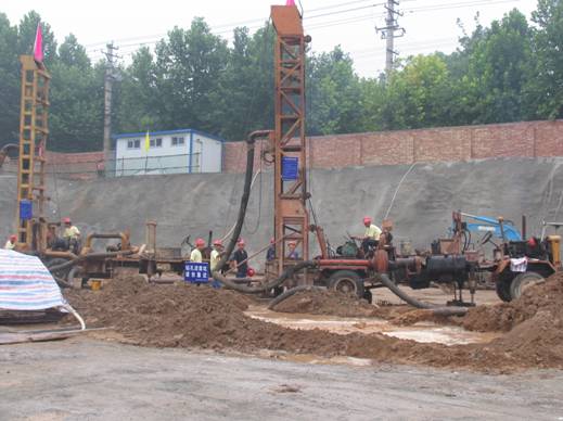 朝陽天下·商住樓,建筑面積45739.31平方米,設(shè)計(jì)地面以上25層,地下1層,基礎(chǔ)采用鉆孔灌注樁設(shè)計(jì)樁徑600mm,樁長29.5m,樁數(shù)447根,砼方量3727立方,鋼筋244噸,砼強(qiáng)度C35。項(xiàng)目施工由我隊(duì)基礎(chǔ)工程處承擔(dān),預(yù)計(jì)工期100天。目前已完成三組試樁施工,經(jīng)檢測達(dá)到了設(shè)計(jì)要求。