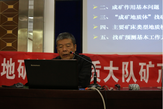 為了提高礦產地質勘查技術水平,對全隊專業(yè)技術人員進行專業(yè)課繼續(xù)教育,我隊特邀多年從事、研究礦產資源勘查工作的專家葉天竺和張德會教授給技術人員授課。葉天竺主要講授了找礦概述、成礦作用基本問題、成礦地質體找礦預測地質模型概述、主要礦床類型找礦預測地質模型和找礦預測的基本工作方法;張德會從熱液成礦地球化學與成礦預測、成礦地球化學與隱伏礦預測、關于勘查地球化學的幾個問題、角礫巖成礦作用和成礦預測等四個方面進行闡述。