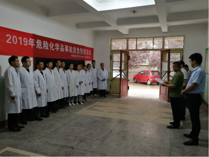 一身穿防腐蝕工作服的實(shí)驗(yàn)室化學(xué)組員工在倉庫取鹽酸過程中,不慎將濃鹽酸瓶掉落地上,濃鹽酸在水泥地面上四溢流淌,事故發(fā)生后,接到報(bào)告的實(shí)驗(yàn)室主任李丁旺、副主任劉佐明立即趕到現(xiàn)場,啟動(dòng)應(yīng)急預(yù)案并通知公司安全環(huán)保部,一面組織灑落區(qū)域人員撤離至安全距離,一面指揮已到達(dá)的應(yīng)急小組成員控制灑落源,設(shè)置路障和警示隔離帶,保證灑落區(qū)域通風(fēng),降低空氣中化學(xué)品濃度,用細(xì)砂圍堵流淌的鹽酸防止擴(kuò)散,區(qū)域被控制后,身穿防腐服,腳蹬防酸堿鞋,手戴防腐手套的救援人員有條不紊的用熟石灰對酸液中和、PH試紙檢測、塑料工具清理廢棄物、大水清理現(xiàn)場.....這不是真正的事故現(xiàn)場,而是我公司實(shí)驗(yàn)室6月21日下午組織的一場加強(qiáng)化學(xué)品灑落處置能力,提高員工緊急情況下的應(yīng)變能力及自我保護(hù)能力的應(yīng)急演練,雖為模擬,但每個(gè)參練人員都能嚴(yán)格按照真正的事故處置程序做的一絲不茍,各負(fù)其責(zé),配合默契,及時(shí)、有效地完成了演練任務(wù)。